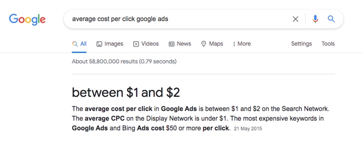 By Google's own admission, the AVERAGE cost of a pay-per-click Ad is now between $1 and $2.